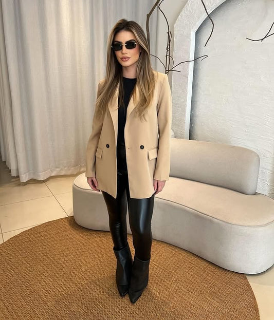 Blazer Feminino Off-White avec Pérolas et Cinto Ajustável