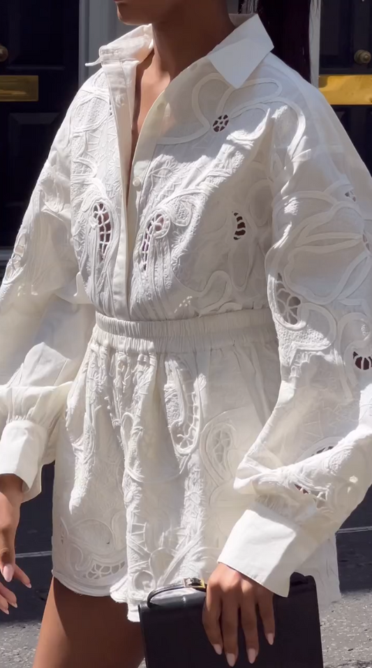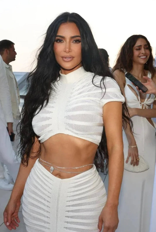 Ensemble Liz en Tweed avec Calça Jeans Cintura Alta