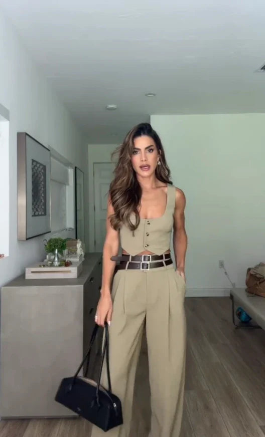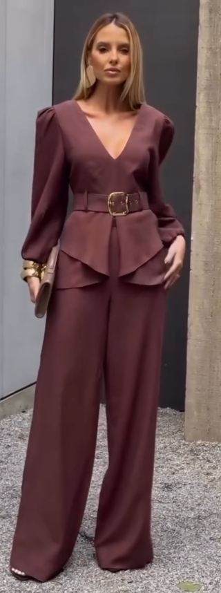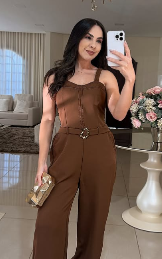 Macacão Executiva Chic Alfaiataria Risca de Giz avec Camisa Branca