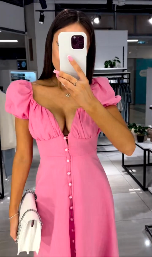 Robe rose glamour à boutons