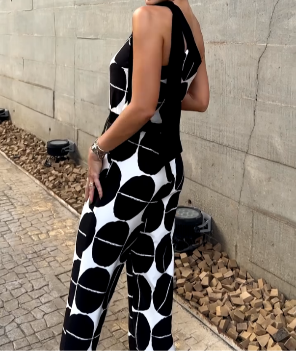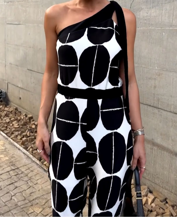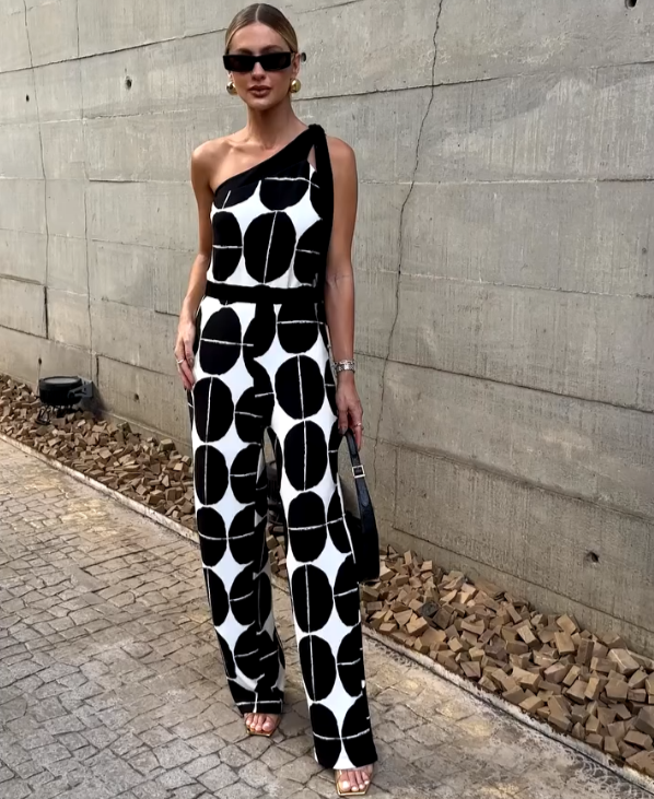 Macacão Ombro Único Estampa Geométrica