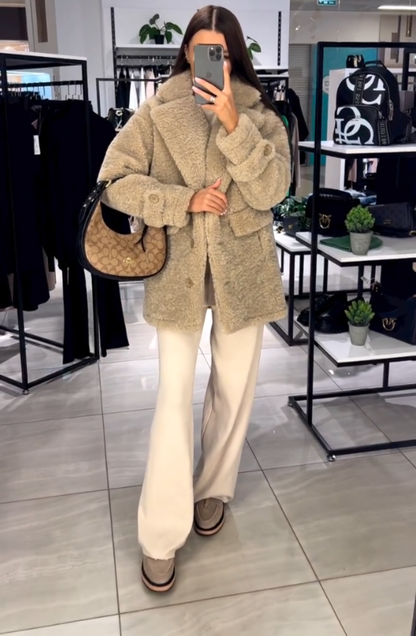 O Casaco Elizaveta est une peça-chave pour quem cherche style et conchego nos jours frios. Feito em tecido peluciado de toque suave, ele garante un visuel sophistiqué et moderne sans ouvrir plus de confort. Un modèle surdimensionné avec une grande ampleur et des sacs utilitaires très pratiques, car il est très facile de combiner des combinaisons élégantes avec des chaussures de sport, des jeans ou des robes habillées.