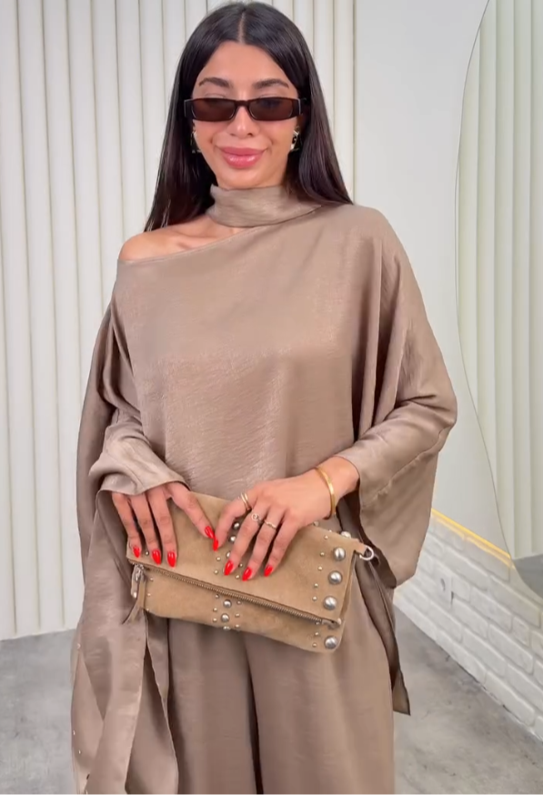 Produit avec du tissu acétiné de vêtements de niveau élevé et sophistiqué, pour un fluide visuel et un confort sans perdre en sophistication. Un chemisier avec un modèle unique et une déco d'un ombre a ajouté du charme et de la personnalité, ce qui donne à la peau une garantie de mouvement et de style.