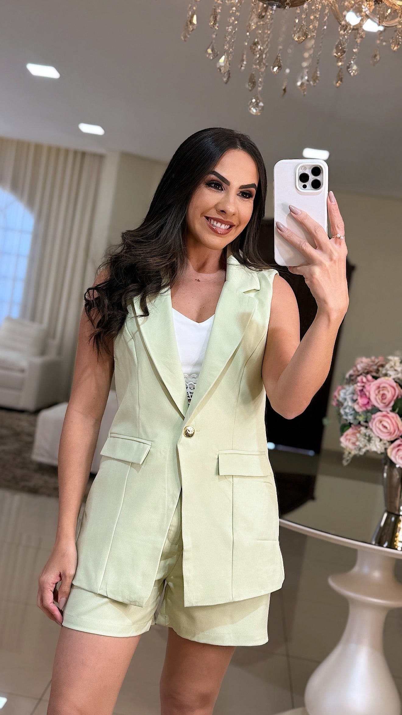 💚 Conjunto Alfaiataria Verde Claro – Colete Alongado + Court