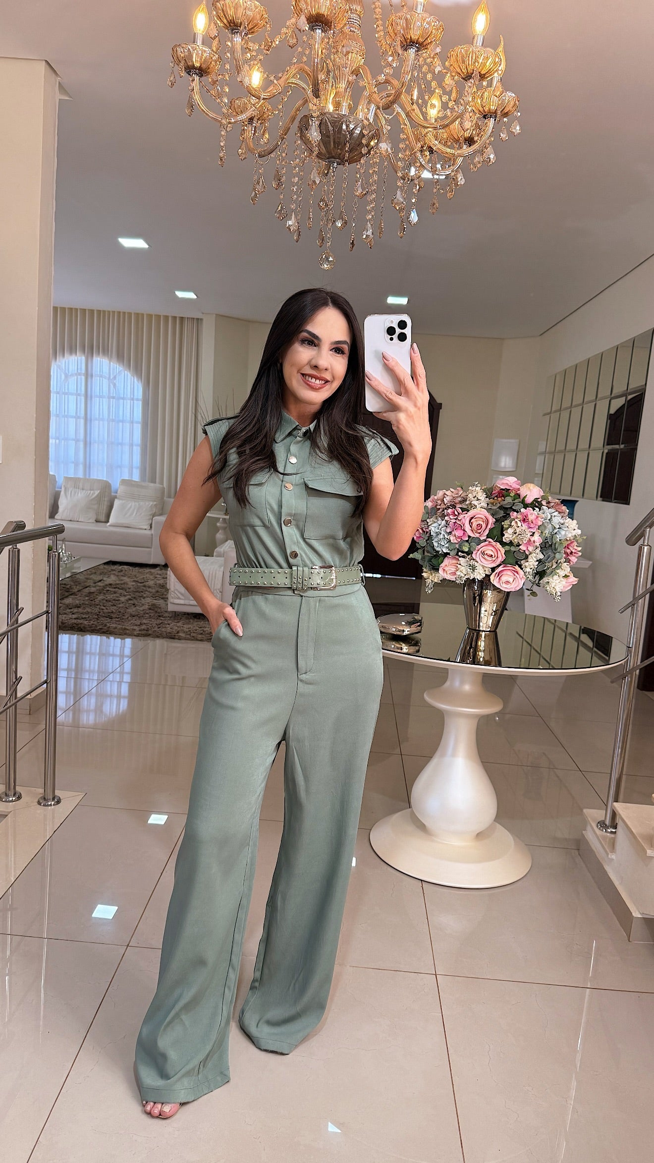 💚 Macacão Alfaiataria Verde Militar com Cinto