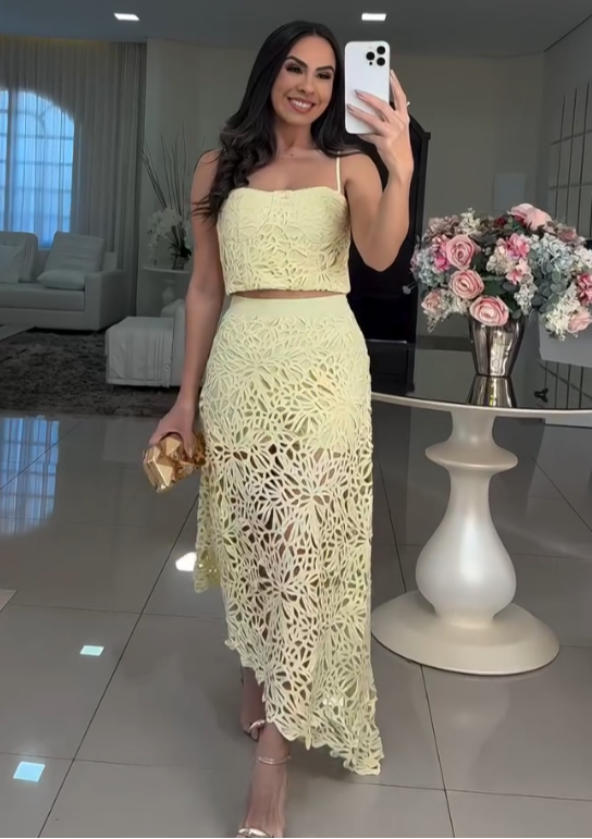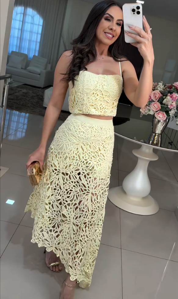 Délicat et charmant, le Conjunto Alëna est parfait pour les occasions spéciales du jour. Produit en laise amarelo suave, ele traz un niveau visuel, féminin et élégant.